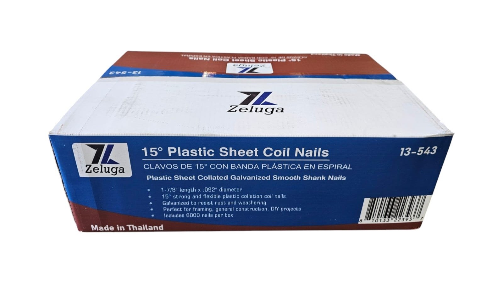 15° strong and flexible plastic collation coil nails. Galvanized to resist rust and weathering. Perfect for wood framing, general construction, DlY projects. Includes 6000 nails per box.